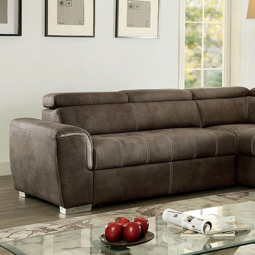 FOA WestSARIN Warm Gray Sectional, 129 1/2"L X 37 3/8"W X 32 1/4"H, 207lbs. Create a luxurious and sophisticated living room with this uniquely shaped sect...