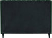 Snuggle up to a pet or other loved one in this richly upholstered Eva green velvet king size bed for the ultimate in rest and relaxation. The wing back headboard has cushioned vertical deep channel tufting, and both the side rails and footboard are upholstered too for your comfort. Tapered black wood legs match the upholstery and support this contemporary bed, elevating it sufficiently that you can store items underneath.