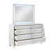 Introducing the luxurious Harlequin Bedroom Collection, the epitome of modern elegance and sophistication. Crafted from high-quality poplar solids and veneers, this collection is built to last, ensuring that your investment is a long-lasting one.The platinum finish of the Harlequin Bedroom Collection creates a shimmering and chic look, sure to impress anyone who enters your bedroom. The Full Ext Ball Bearing Glides provide smooth and easy opening and closing of drawers, while the English Dovetailed Drawers offer exceptional strength and stability.Each drawer in the Harlequin Bedroom Collection is lined with soft velvet, ensuring that your clothes and other items remain safe and protected. The Silver Lame with Mylar Cover throughout adds an extra layer of glamour to this already stunning collection.The Silver Drawer Pulls with crystal inlays add a touch of luxury, while the lighted, beveled dresser mirror with touch dimmer is both practical and beautiful. The Lighted Headboard with touch dimmer is the perfect finishing touch, ensuring that your bedroom is as inviting as it is beautiful.With the Harlequin Bedroom Collection, you''re not just investing in a beautiful bedroom set; you''re investing in a lifestyle upgrade. Treat yourself to the ultimate in modern luxury with this stunning collection.