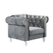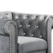 Introducing the Emma living room set - the perfect combination of style and comfort for your home. This set includes a sofa, loveseat, and chair, all featuring a stunning crystal tufted back that adds a touch of glamour to any space. Made with 100% polyester, these pieces are durable and easy to maintain. The set is available in three sleek colors - blue, black, and gray - so you can choose the one that best matches your decor. Upgrade your living room with the luxurious Emma set and enjoy hours of relaxation and entertainment.