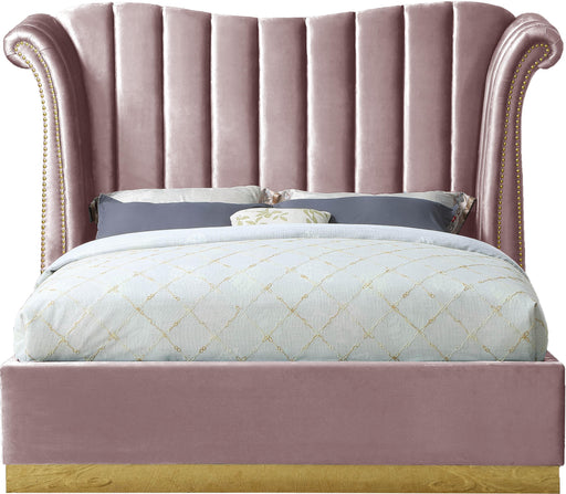 MeridianMake a dramatic statement while creating contemporary flair in the bedroom with this breathtaking Flora pink velvet king bed. Featuring a gold meta...