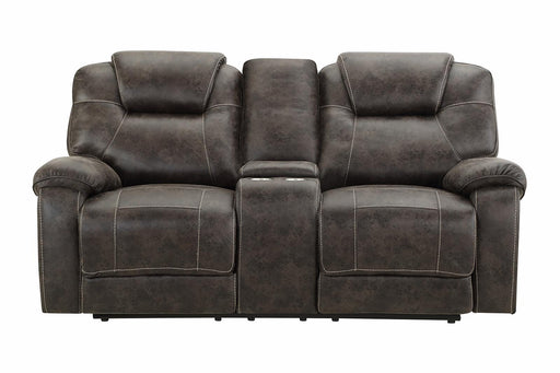New Classic Furniture Anton Dual Recliner Console Loveseat with Power Footrest in Chocolate