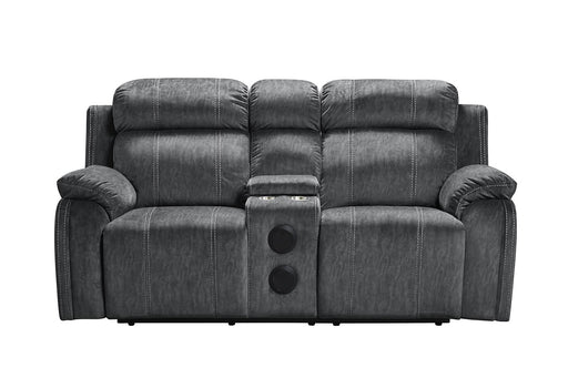 New Classic Furniture Tango Console Loveseat with Speaker and Power Footrest in Shadow