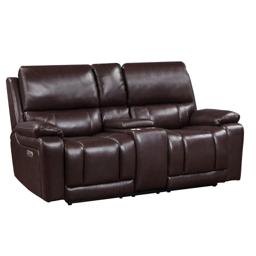 JOSHUA LEATHER CONSOLE LOVESEAT W/ DUAL RECLINERS-DK BROWN