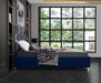 There's nothing scary about the Ghost navy velvet queen size bed, with its plush cushioned and upholstered side rails and footboard. A curved transparent acrylic headboard allows you to situate it in front of a window without blocking the view, and matching acrylic legs offer a beautiful contemporary appearance. This bed has a complete set of slats included for your convenience, so you won't need to purchase a box spring.