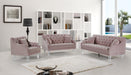 Bring a posh look home with this Roxy Pink Velvet Loveseat. The velvet is both striking yet unobtrusive, giving your room an elegant style boost while providing you with a comfortable spot to sit and relax while reading or watching TV. Deep button tufting gives the loveseat a touch of texture while ensuring its sophistication is lost on no one. Add this contemporary loveseat on its own to your living room or den, or buy it alongside the coordinating sofa and chair for a complete and total makeover.