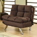 Comfort and style make this futon sofa and chair the perfect pick for a small living area. Both chair and sofa provide soft and comfortable seating in a chocolate brown microfiber. Easily converting to a bed, the sofa has two extra support legs for comfort and the chair converts to a chaise longue.