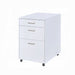 Keep your personal files safe and mobile with this Coleen file cabinet. The perfect size for personal use, including casters make this cabinet easy to move. The bottom larger drawer is the right size for file folders, middle box drawer is perfect for supplies and the top drawer is great for office supplies or other small accessories. The high gloss finish looks good in any environment and is easy to clean.'